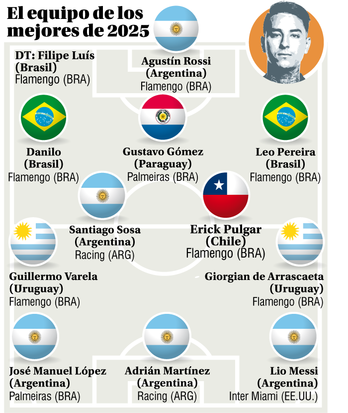 A Erick Pulgar solo le faltaba el reconocimiento continental para cerrar un 2025 de ensueño. Tenía seis títulos en el bolsillo en su excepcional año con el Flamengo, el premio al Mejor de los Mejores del Círculo de Periodistas Deportivos y ayer sumó su inclusión en el once ideal de América en la tradicional premiación de fin de año del diario uruguayo El País.