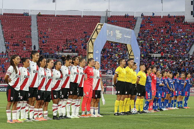 El amistoso entre la U femenina y River transcurrió sin problemas ayer en Ñuñoa: ganaron las azules 3-2 ante 16.185 personas. Foto: Joy Group