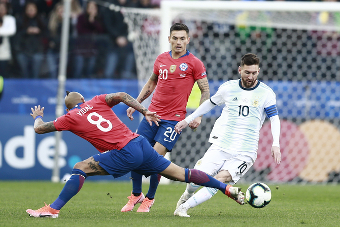 Vidal y Aránguiz unieron sus mejores versiones en la selección, logrando ganarle dos finales a la Argentina de Messi. Foto: El Mercurio.