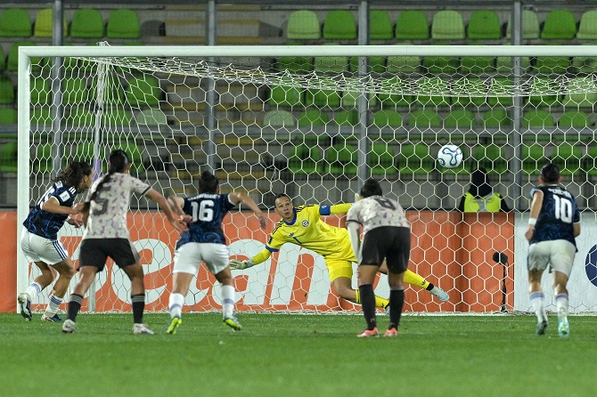 Y así como Díaz lo pasó mal con Núñez por la banda diestra, por el otro costado Camila Sáez también sufrió con Agostina Holzheier. Más allá de un rato de dominio chileno, con pelotazos a las espaldas de las zagueras trasandinas, el control del juego era de las forasteras, que aprovecharon los espacios y fueron empujando tanto hasta que provocaron un penal (mano de Náyadet López advertida por el VAR) que Florencia Bonsegundo mandó a la red.