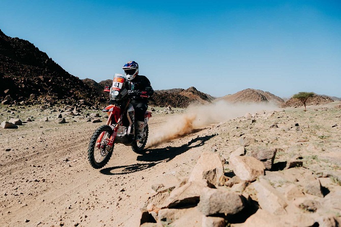 Cornejo (Hero), que marcha octavo en la general, intentará recortar parte de los 22:01 que lo separan de la cima, en la que Tosha Schareina (Honda) y Ricky Brabec (Honda) igualan, seguidos a 1:24 por Daniel Sanders (KTM). Por su parte, Tomás de Gavardo (KTM) se sitúa 30º.
