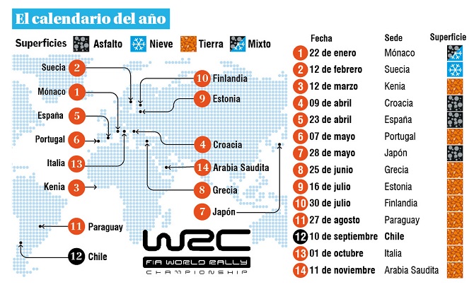 La categoría tiene un calendario de 14 fechas, incluyendo la visita a Chile por quinta ocasión, entre el 10 y el 13 de septiembre (ver infografía).
